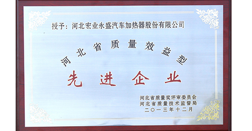 热烈祝贺河北宏业永盛汽车加热器股份有限公司荣获“河北省2013年质量效益型先进企业”称号!